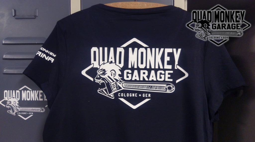 Aus anfänglicher Arbeitskleidung ist eine Marke entstanden. Bei uns bekommen Sie T-Shirts, Hoodies, Zip Jacken u.v.m. mit unserem begehrten „Quad Monkey Garage“ Touch. Jegliche Formen, Schriften und persönliche Logos können wir für Sie anfertigen.